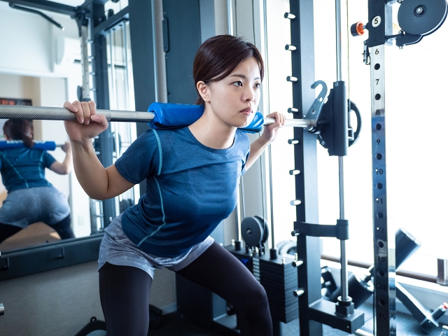 また、下半身全体の筋力向上に最適なスクワットは、腰部の丸まりに気をつけながら太ももが床と平行になるまでおろすことがポイントです。